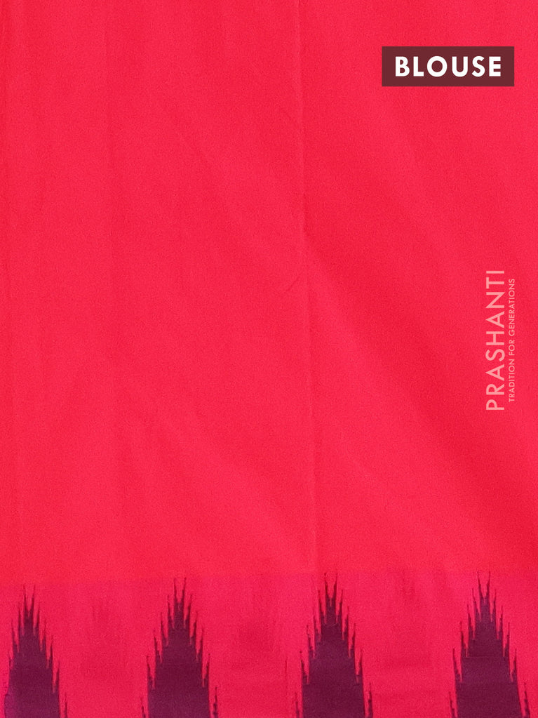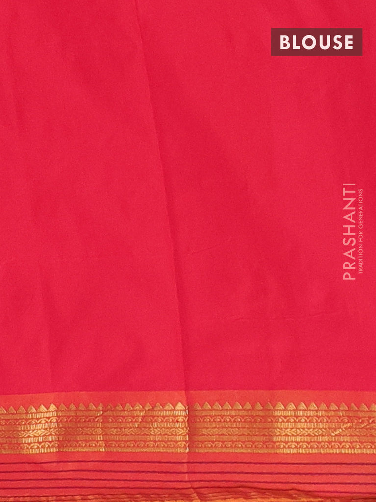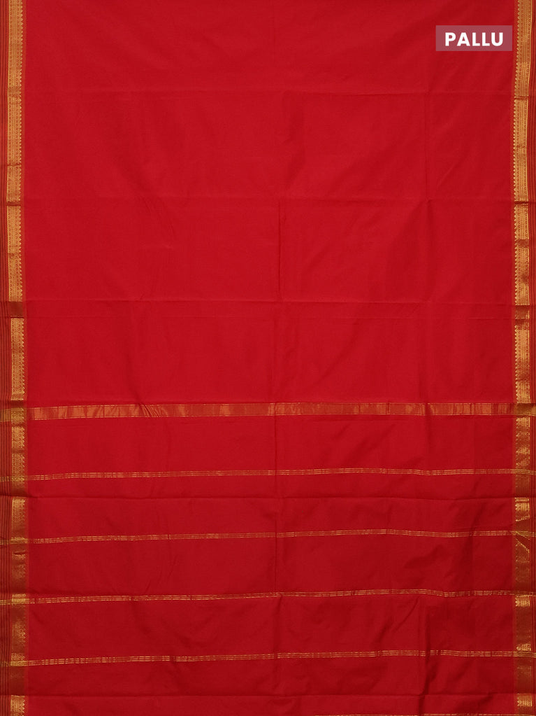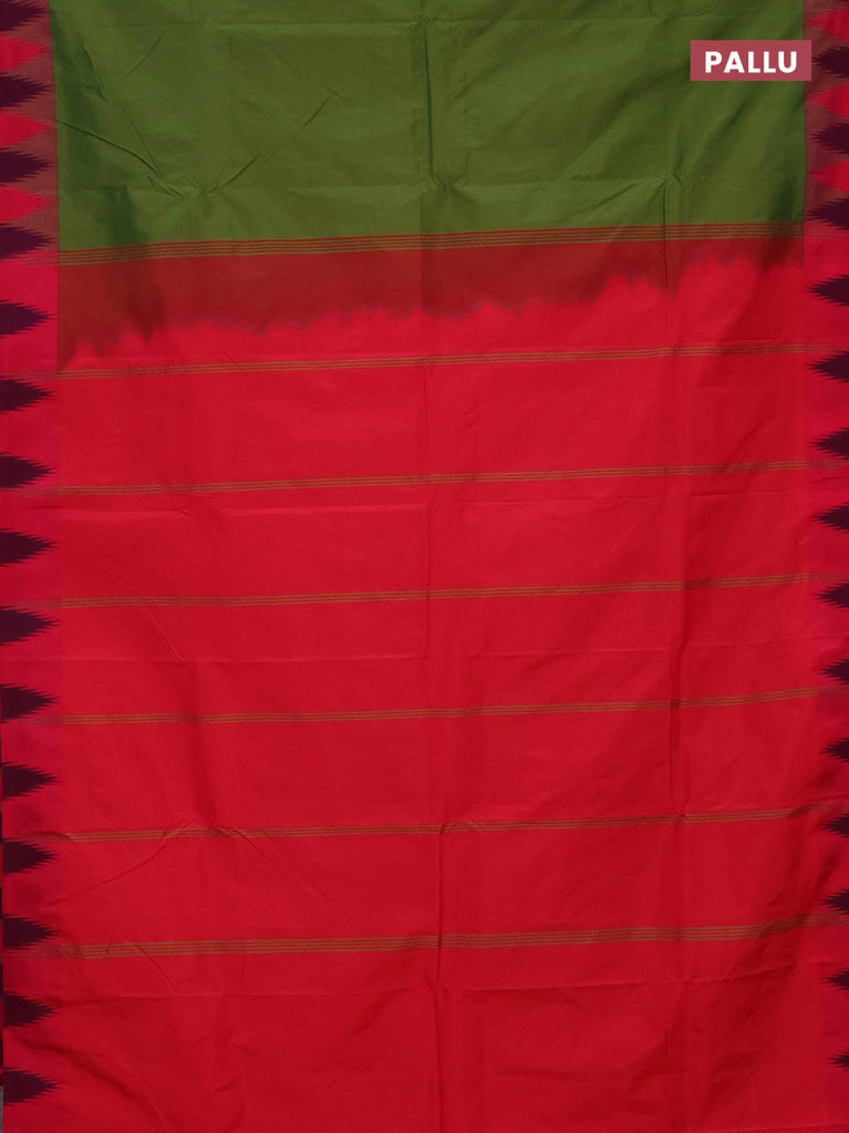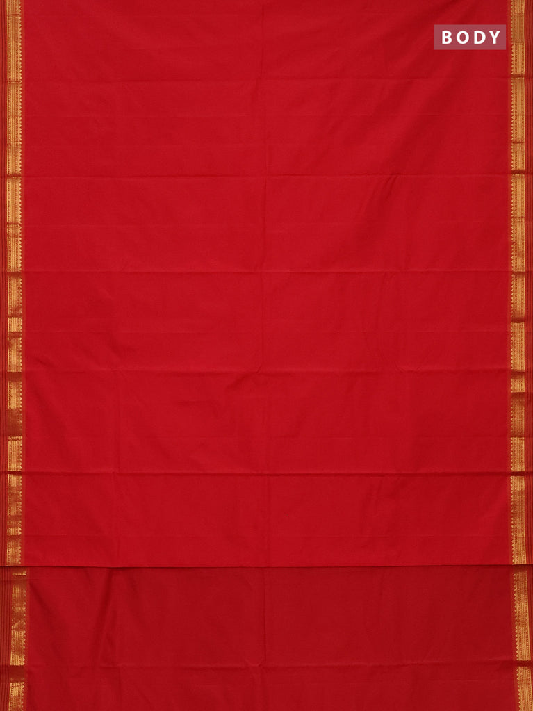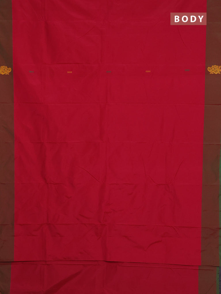 Arani semi silk saree red and light green with plain body and paisley zari woven simple border