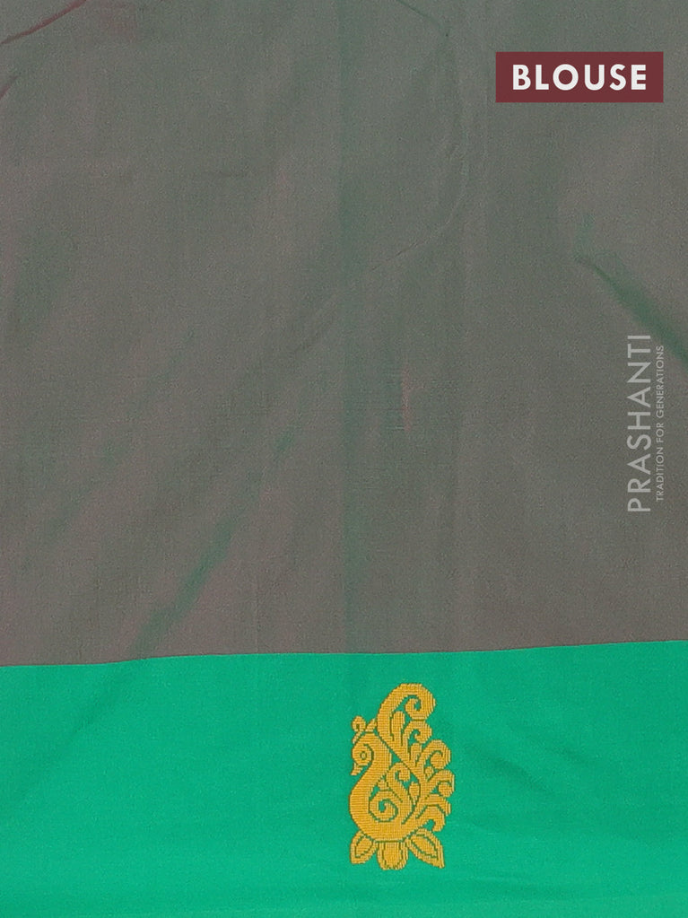 Arani semi silk saree sap green and dual shade of maroon with thread woven buttas and thread woven butta border