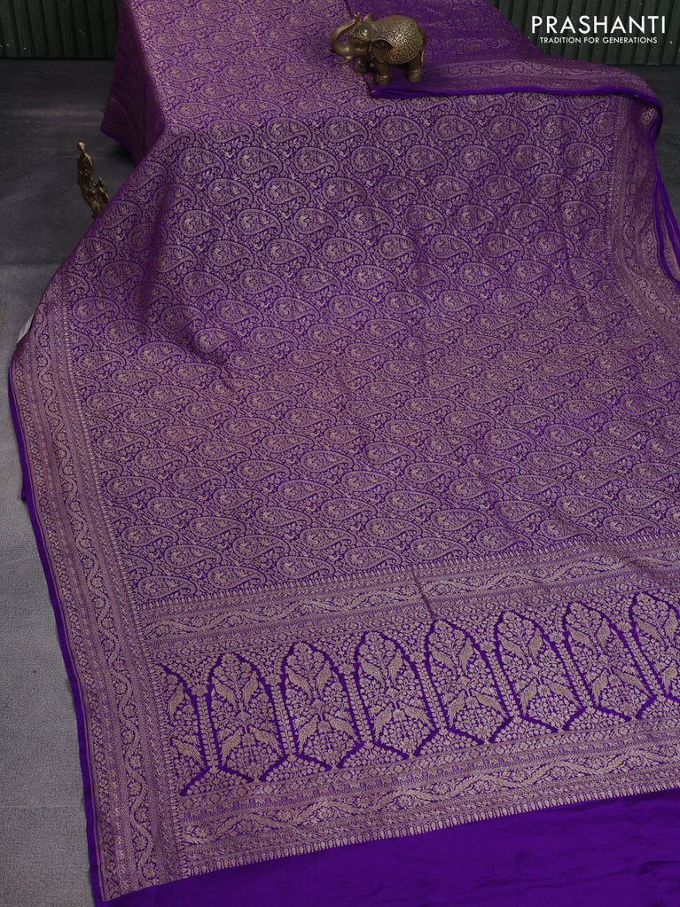 Banarasi crepe saree violet with allover thread & zari weaves and woven border