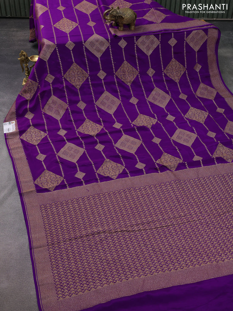 Banarasi crepe saree violet with thread & zari woven buttas and woven border