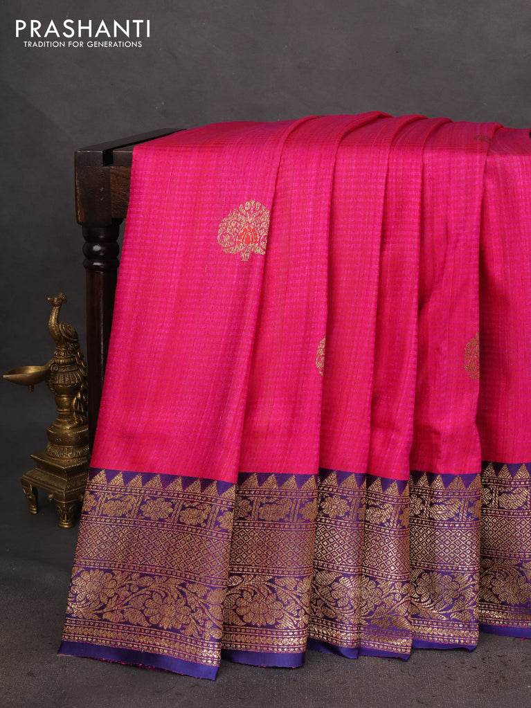 Banarasi handloom dupion silk saree pink and dark blue with woven buttas and woven border