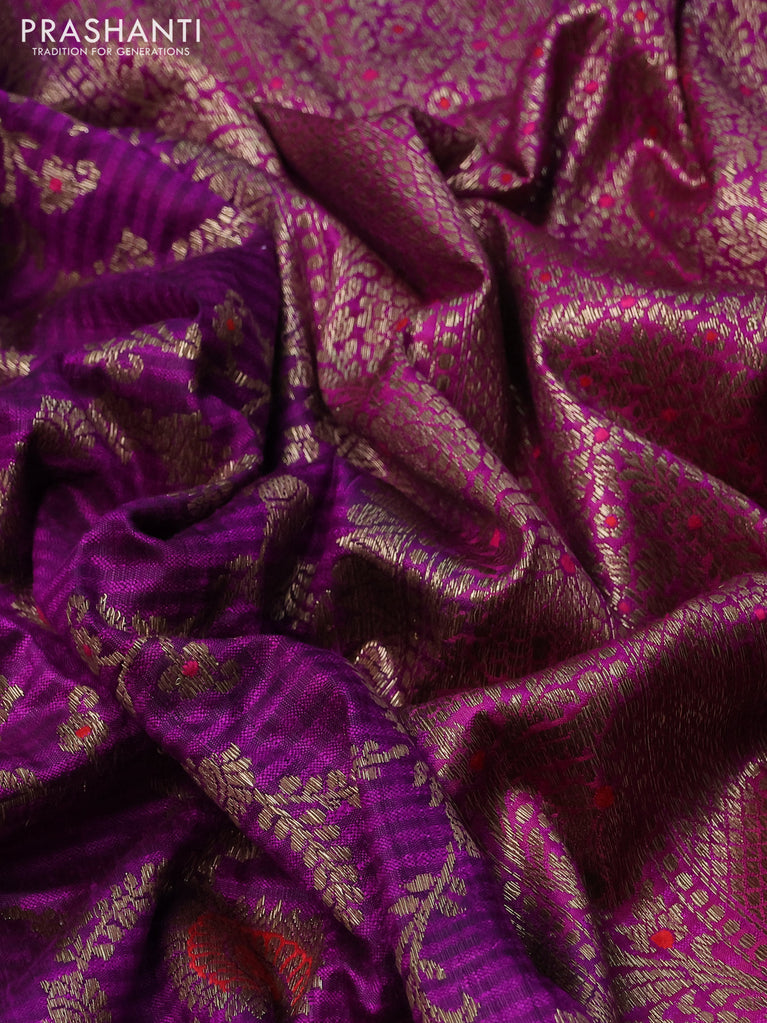Banarasi handloom dupion silk saree purple and purple with allover thread & zari weaves floral weaves and woven border