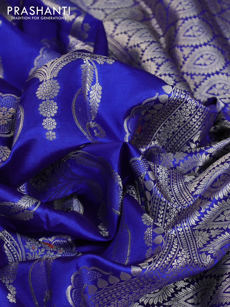 Banarasi poona silk saree violet with zari woven floral buttas and zari woven butta border