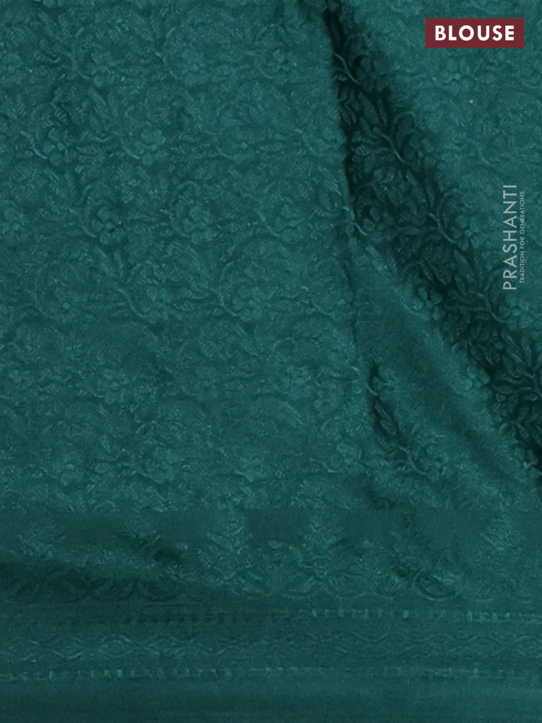Banarasi raw silk saree teal bluish green and pink with plain body and long zari woven border
