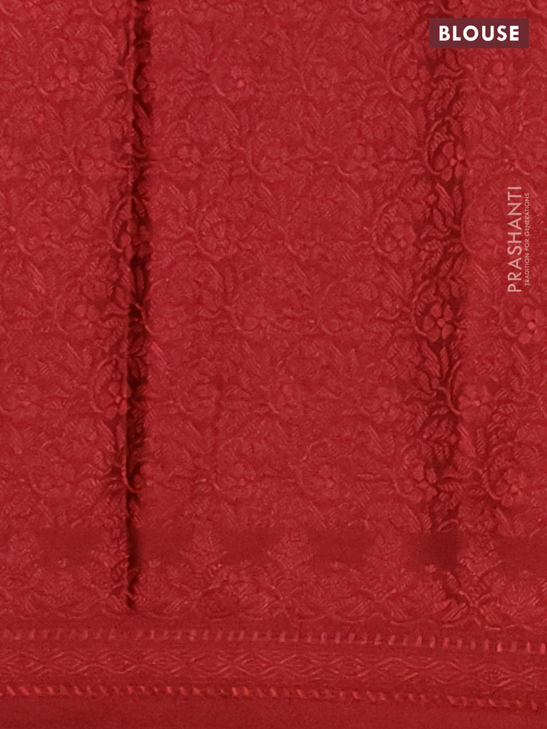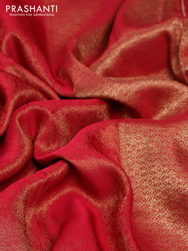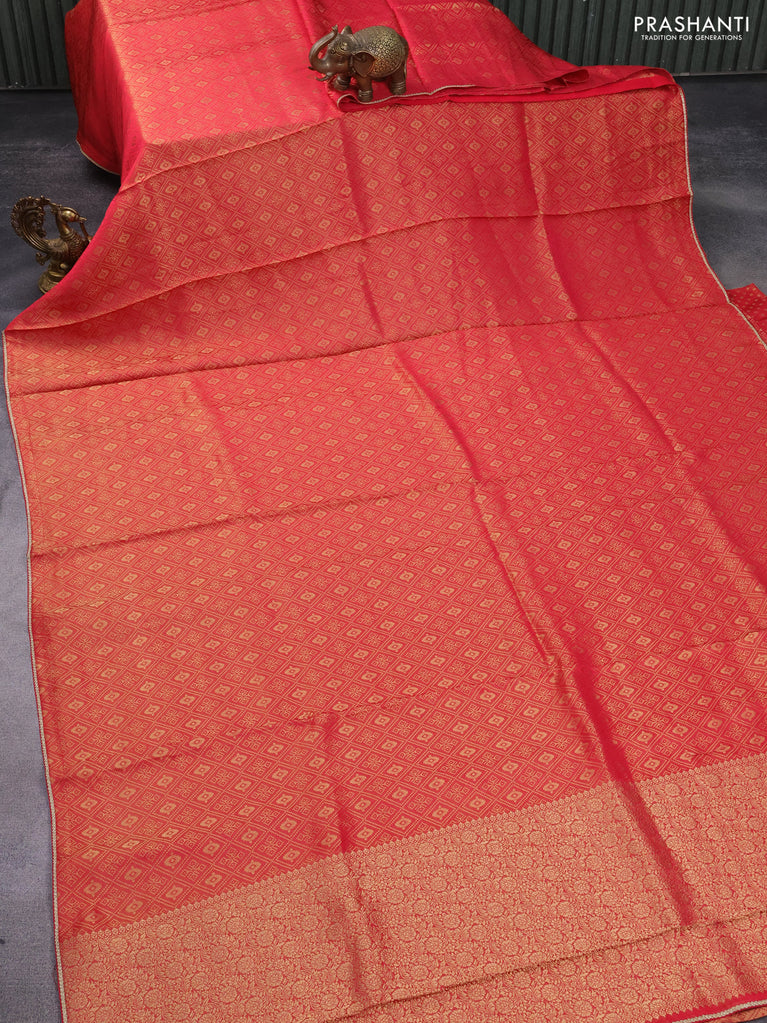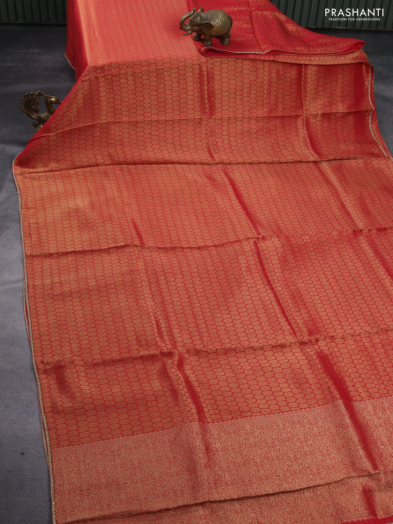 Banarasi semi crepe saree red with allover zari woven brocade weaves and lace work border