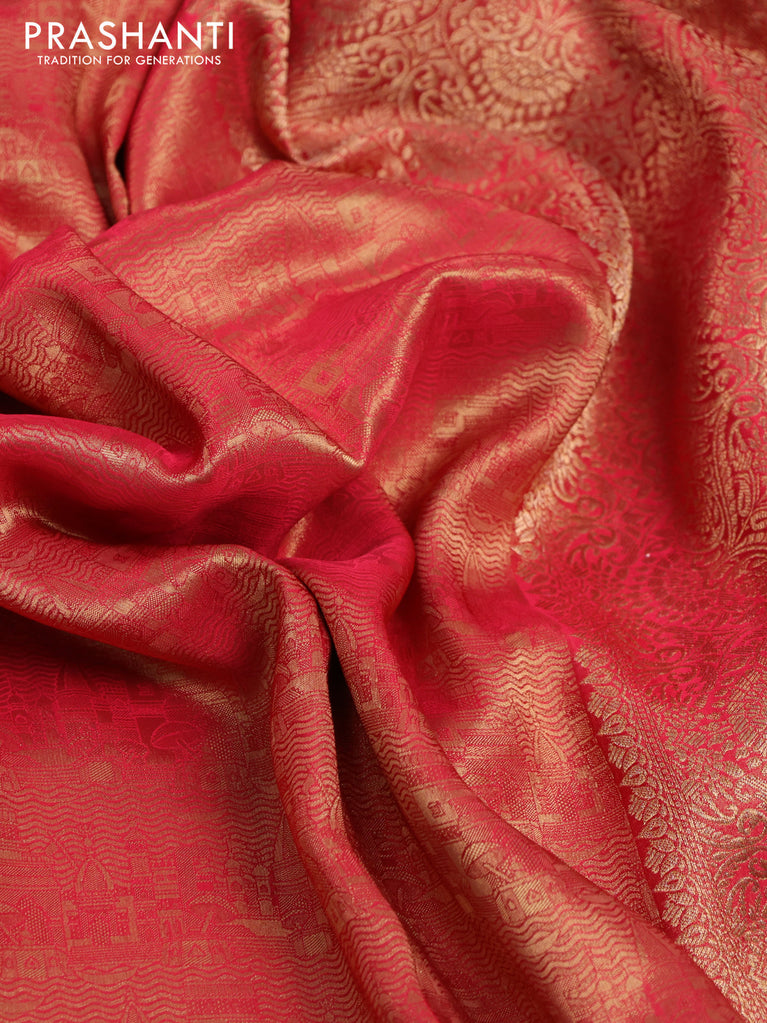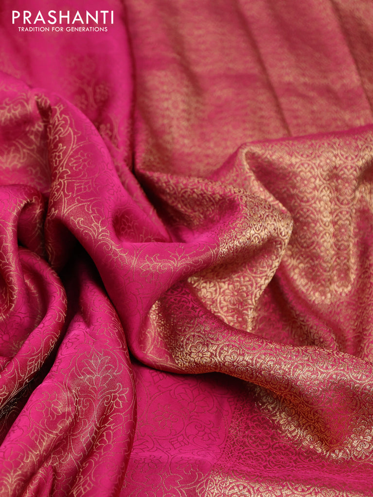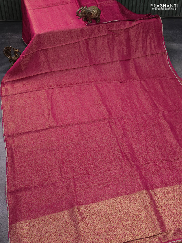 Banarasi semi crepe saree pink with allover zari woven brocade weaves and lace work border