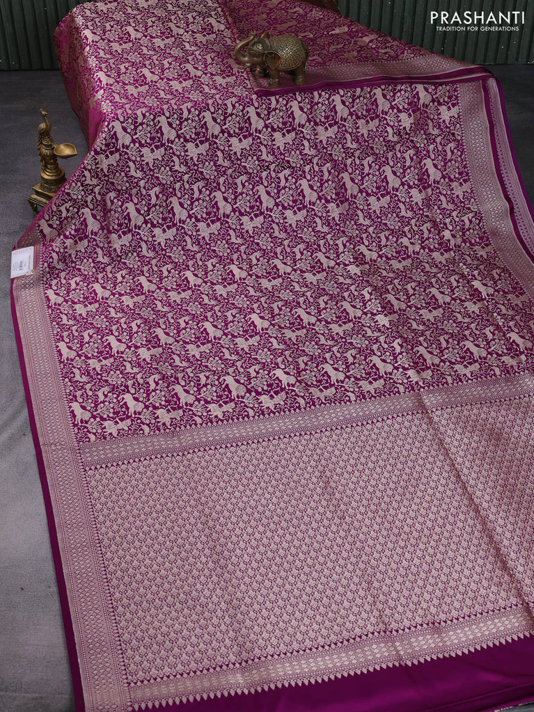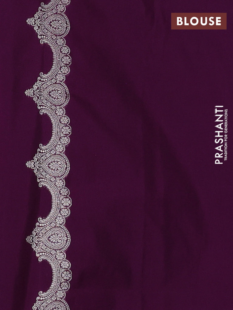 Banarasi semi katan saree purple with silver & gold zari weaves and zari woven border