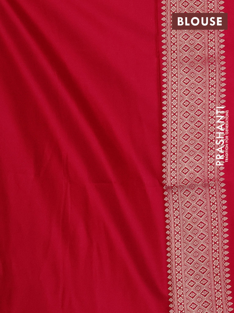 Banarasi semi katan saree red with silver & gold zari woven buttas and rich zari woven border