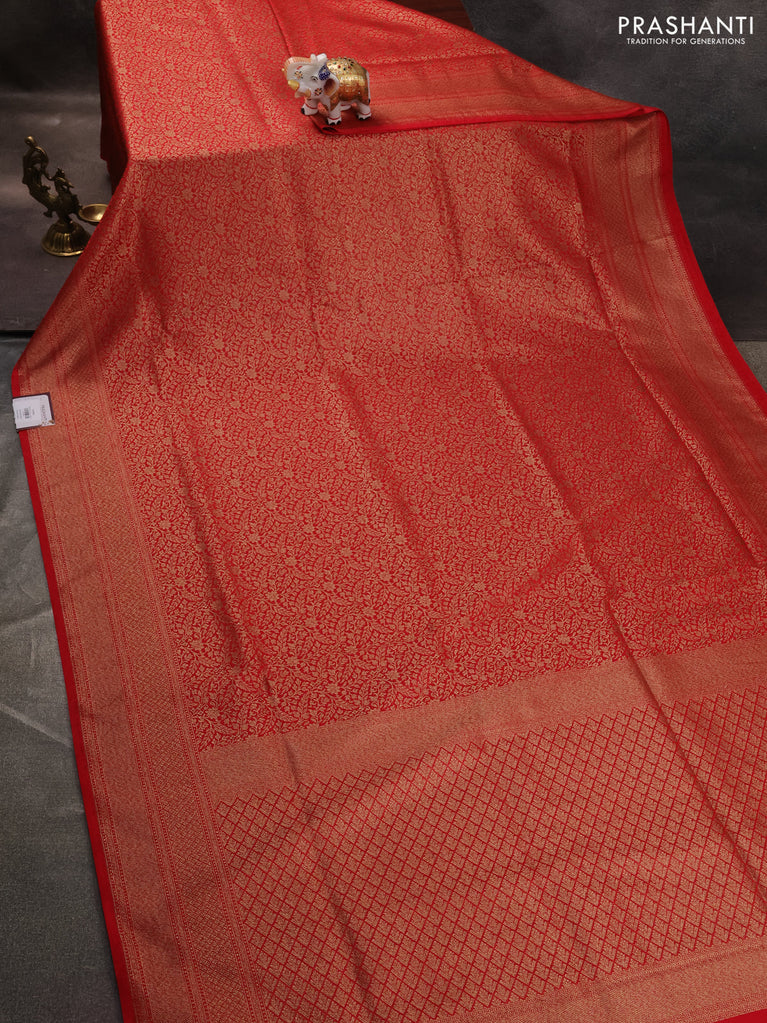 Banarasi semi katan saree red with allover thread & zari woven brocade weaves and woven border