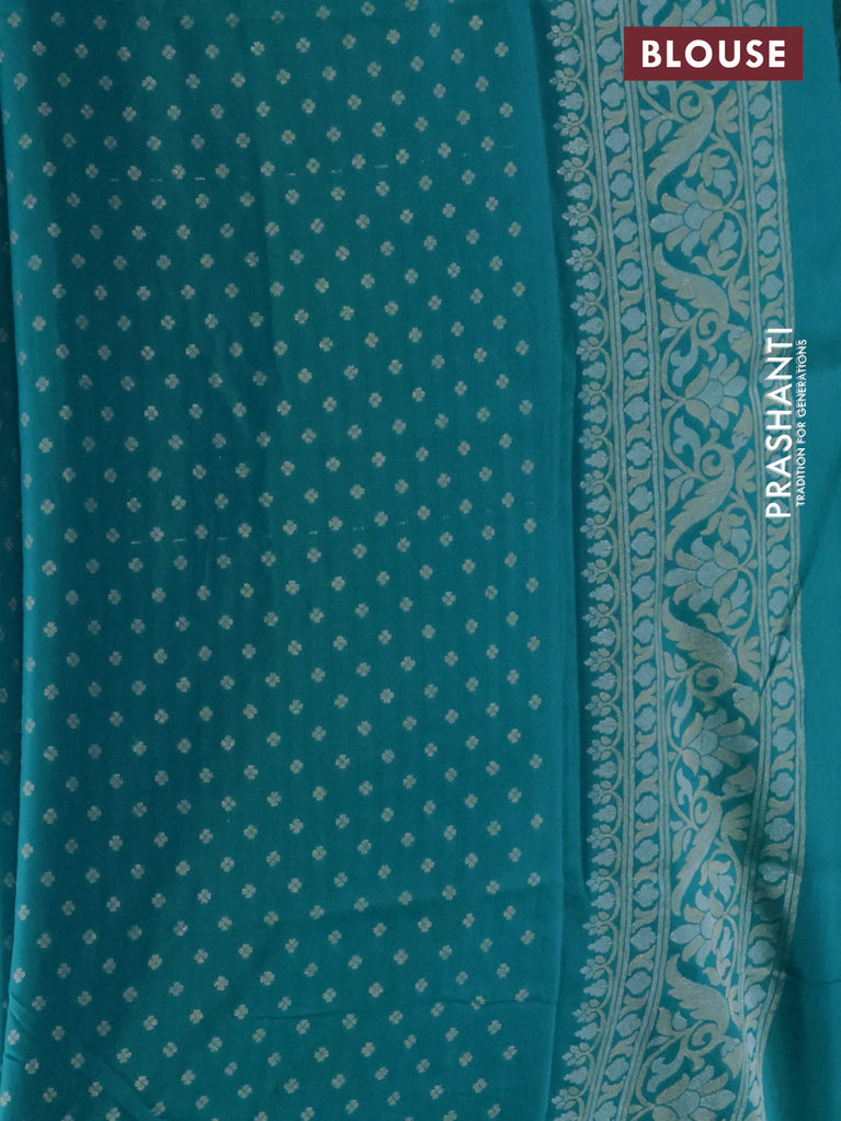 Banarasi semi katan silk saree teal bluish green with zari woven buttas and rich zari woven border