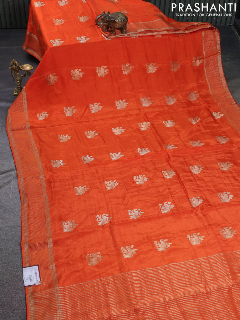 Banarasi silk saree orange and pink with zari woven elephant buttas and zari woven border