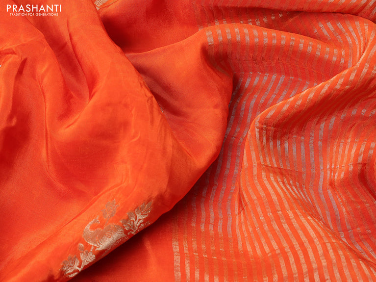 Banarasi silk saree orange and pink with zari woven brids buttas and zari woven border