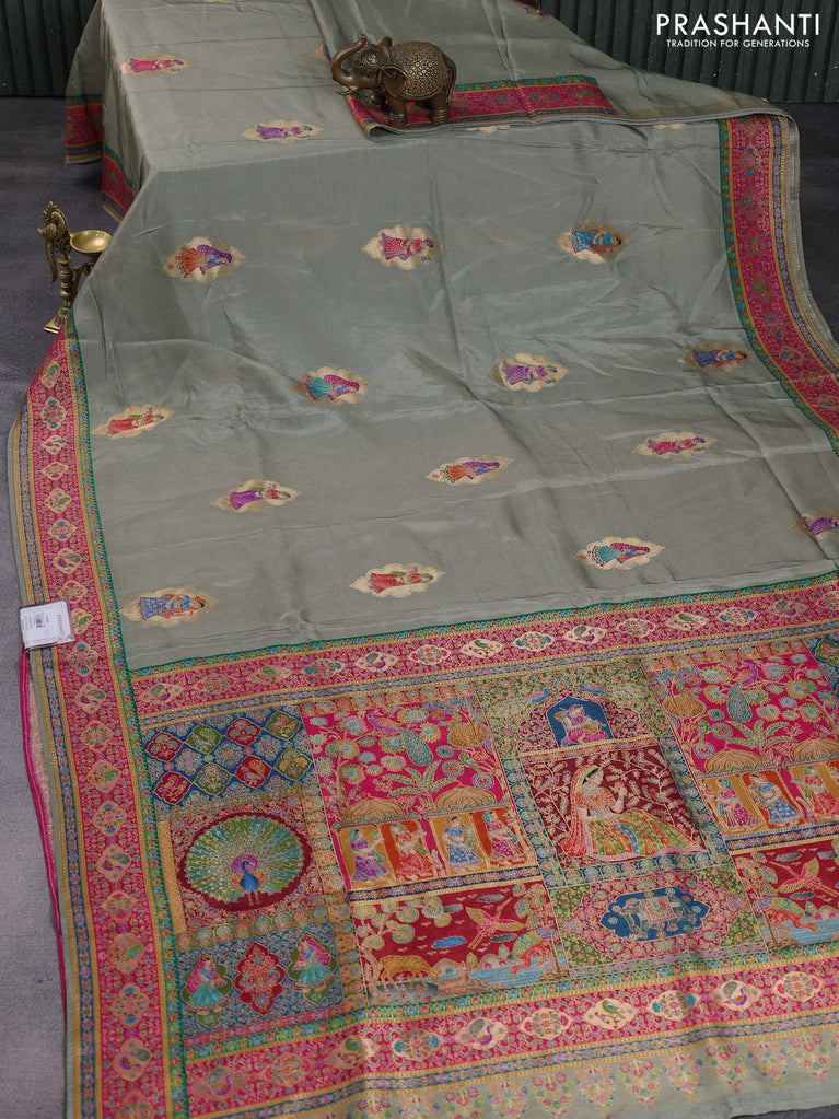 Banarasi silk saree elaichi green with position butta prints and position prints