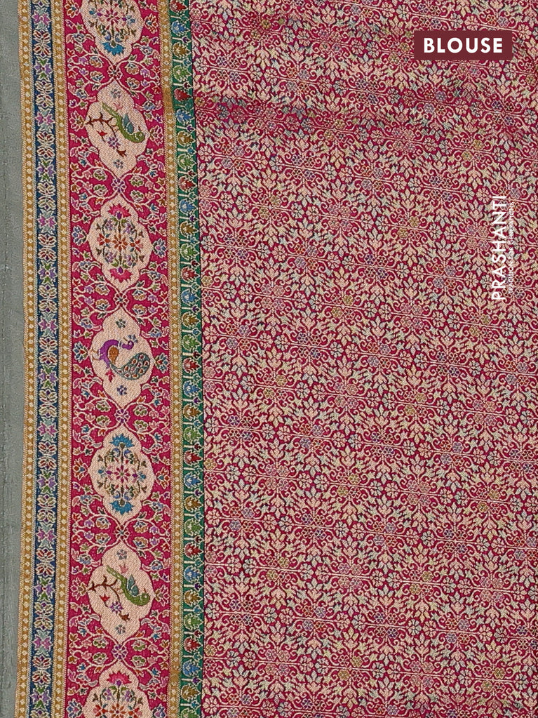Banarasi silk saree green with allover zari woven brocade weaves and floral digital printed border