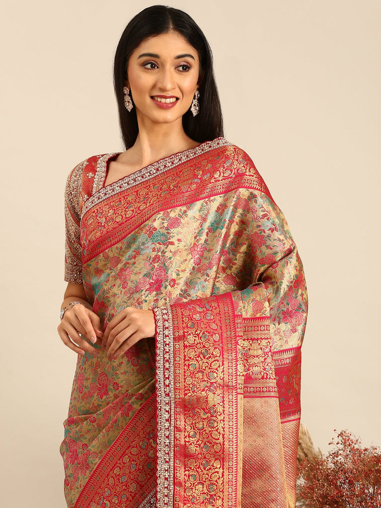 Banarasi uppada silk saree multi colour with allover silver & gold zari weaves and zari woven border