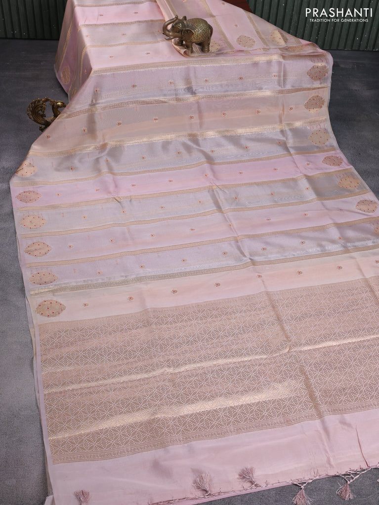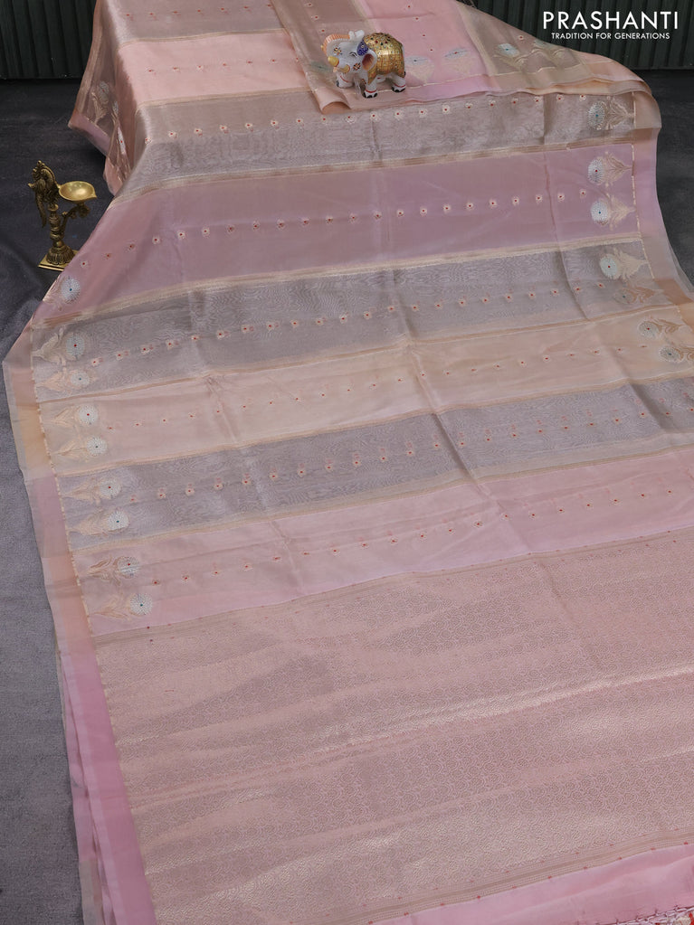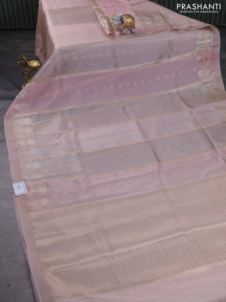Banarasi tissue semi silk saree pastel pink with zari weaves & buttas and floral zari woven butta border