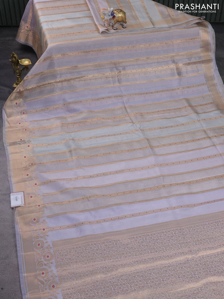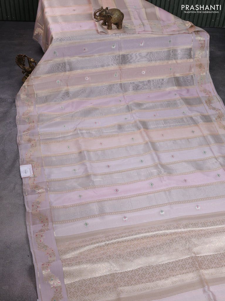 Banarasi tissue semi silk saree pastel shade and pastel lavender with allover zari weaves and zari woven floral border