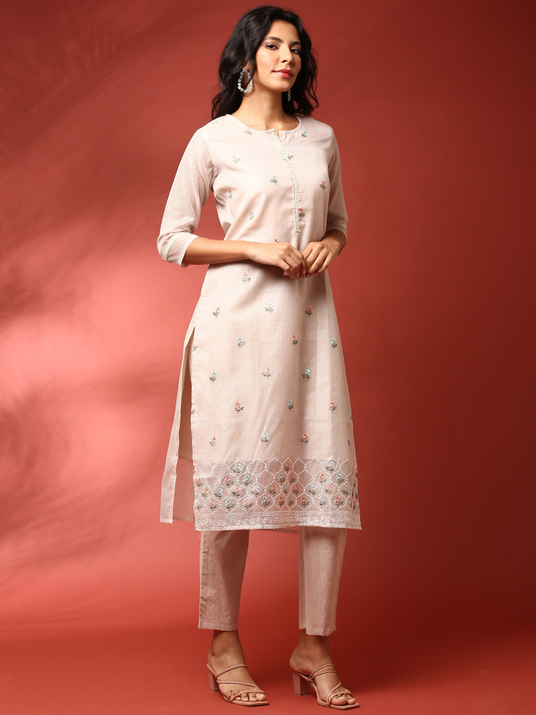 A Slate Rose Straight kurta Crafted In Silk Viscose Tussar, Features Bead Embroidery At Front And Sleeves.