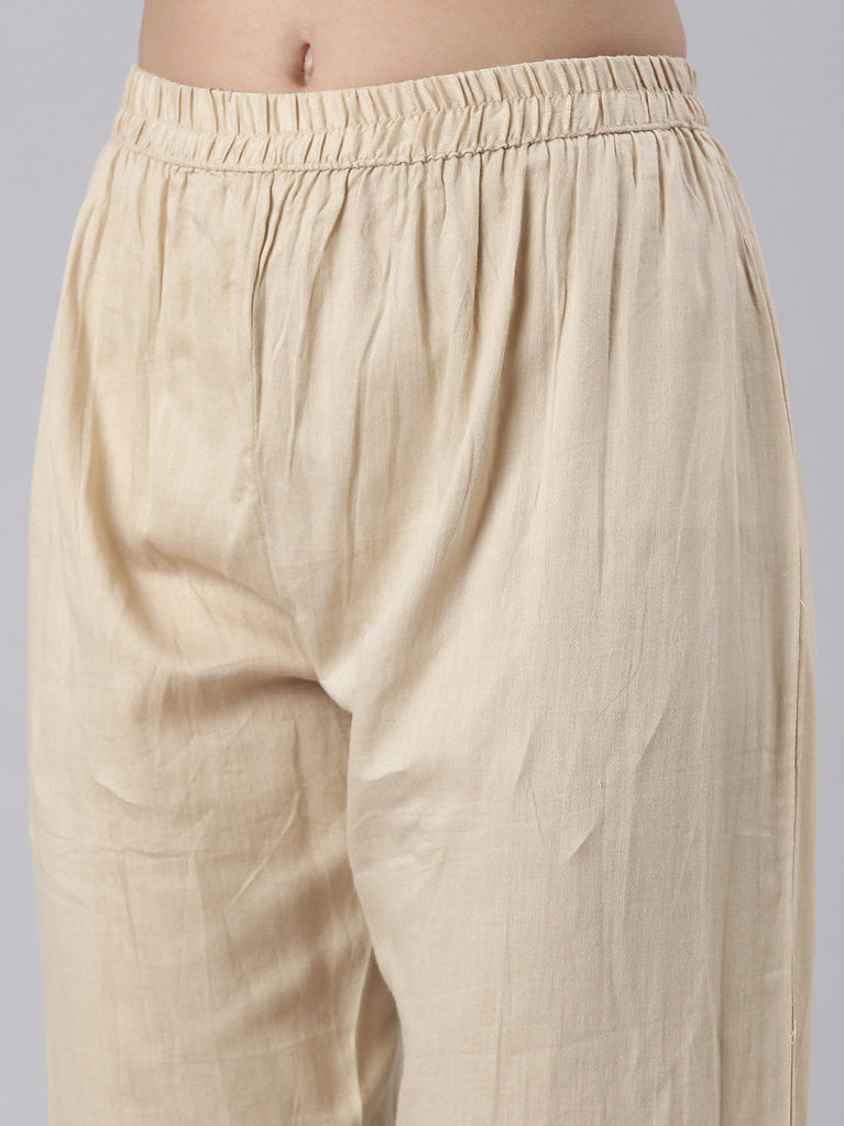 Beige Solid Rayon Straight Kurta and Trouser Set