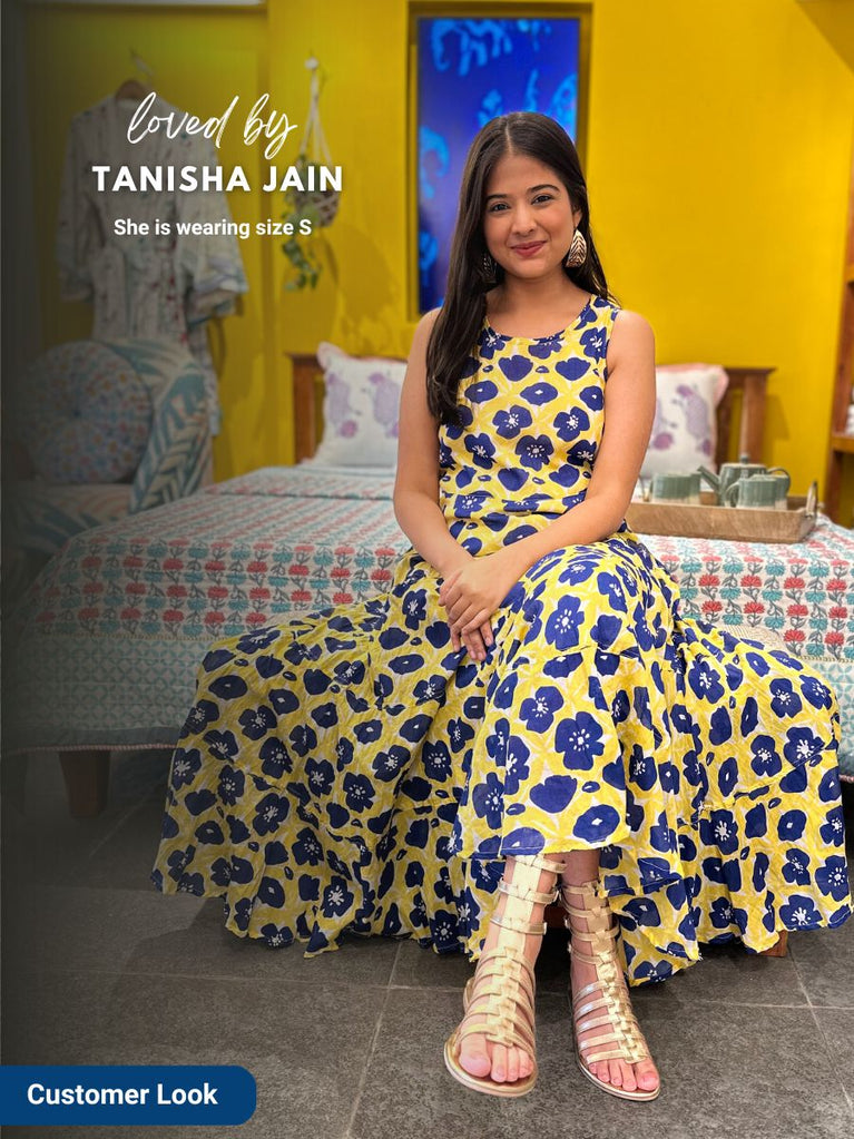 Blouse: Su, the model is wearing size S of blouse from our in house collection. To view similar blouses