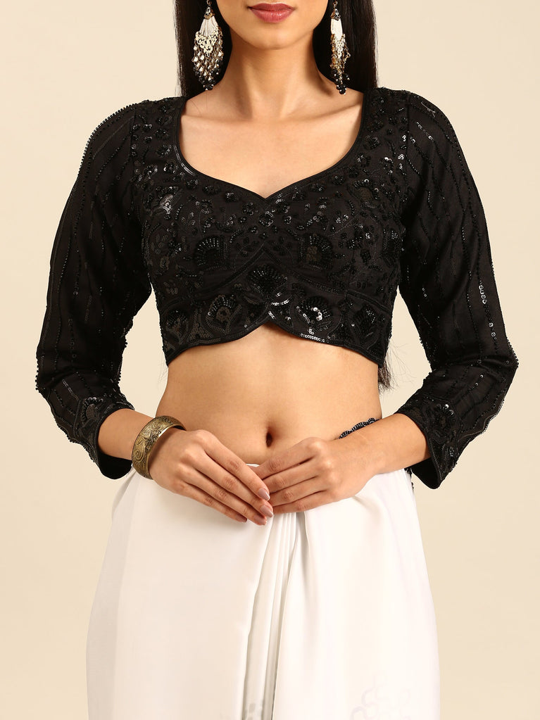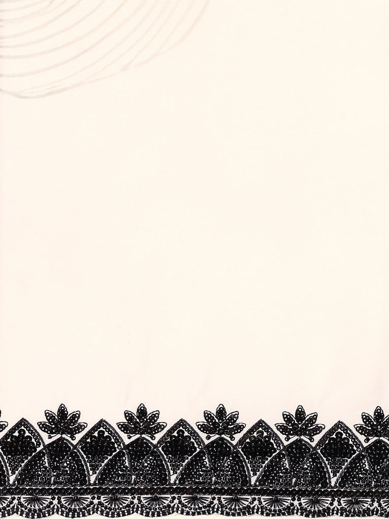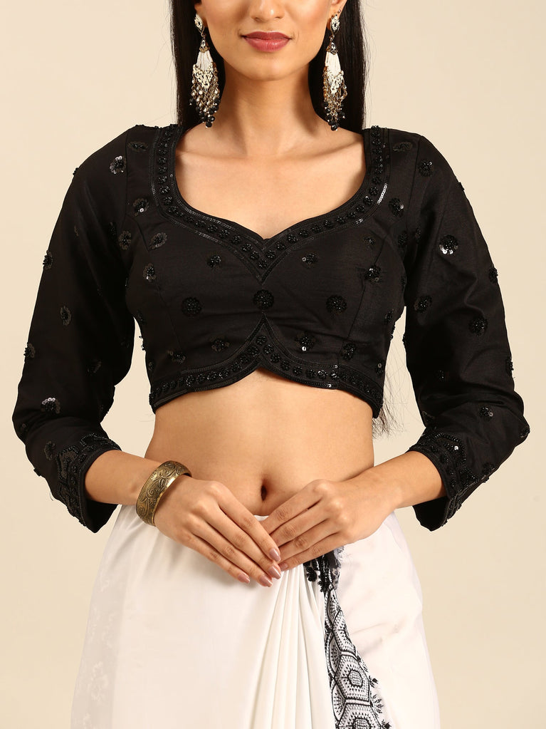 Elevate your elegance with this black and white satin saree featuring exquisite hand embroidery that adds a touch of artistry to every drape. The smooth satin fabric offers a graceful sheen, while the included ready-made blouse ensures a perfect fit and effortless styling. This saree beautifully combines classic tones with delicate craftsmanship, making it ideal for special occasions or festive celebrations where you want to stand out with subtle sophistication.