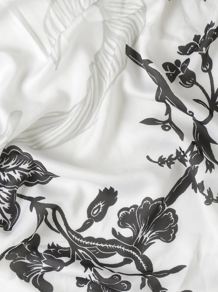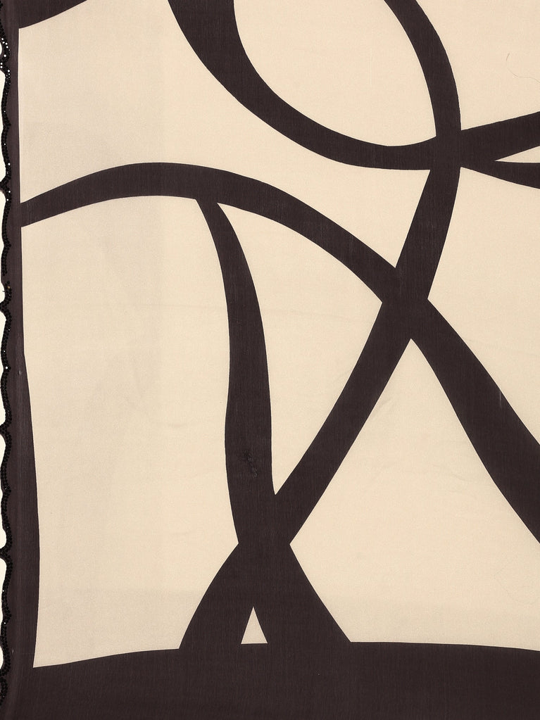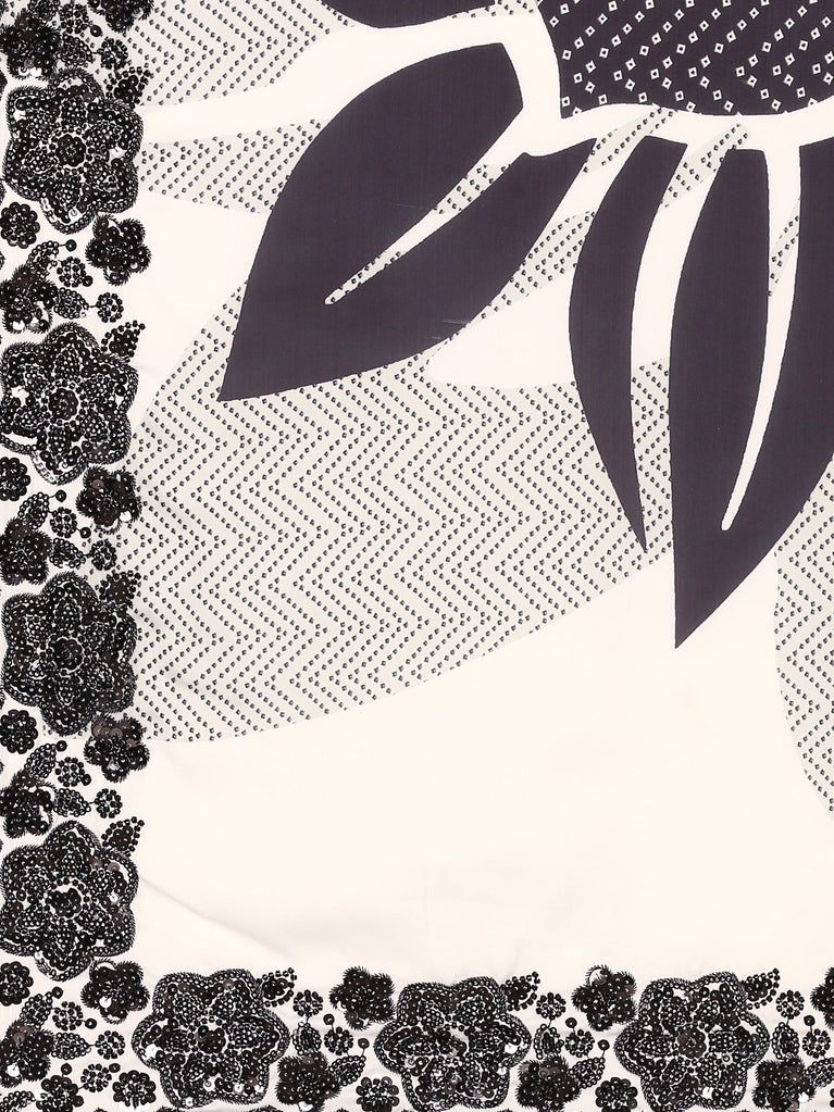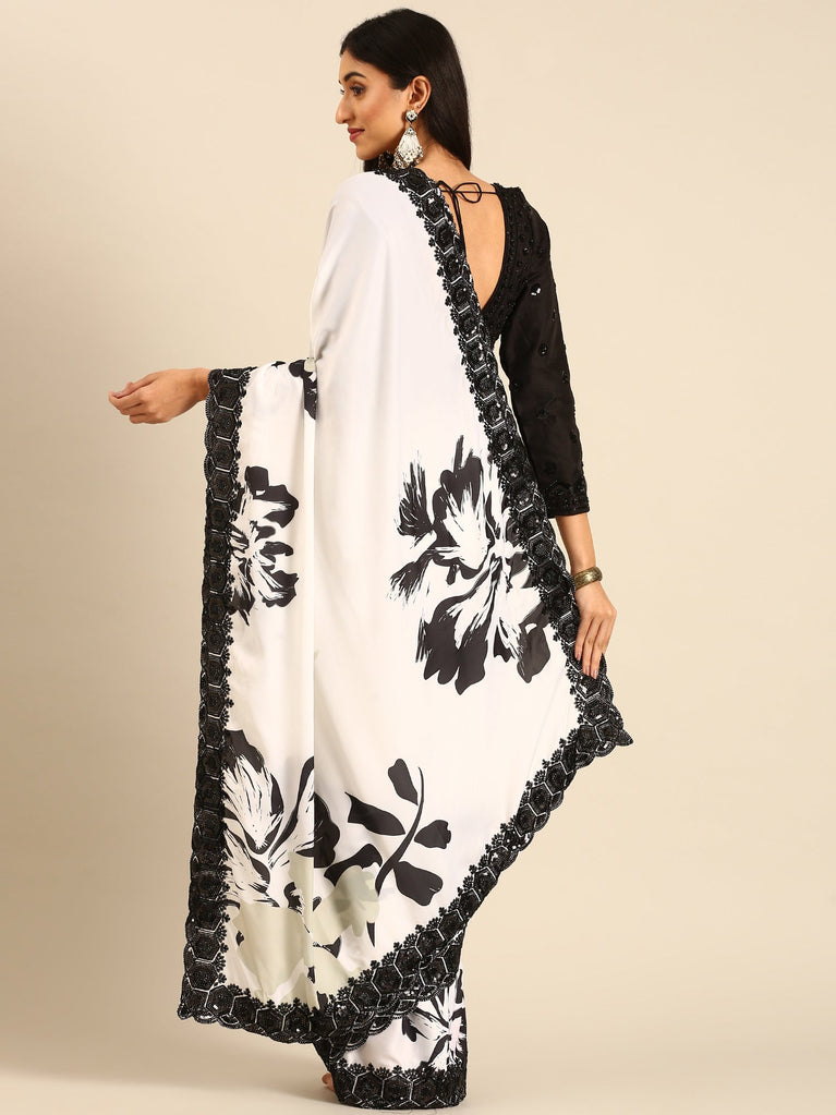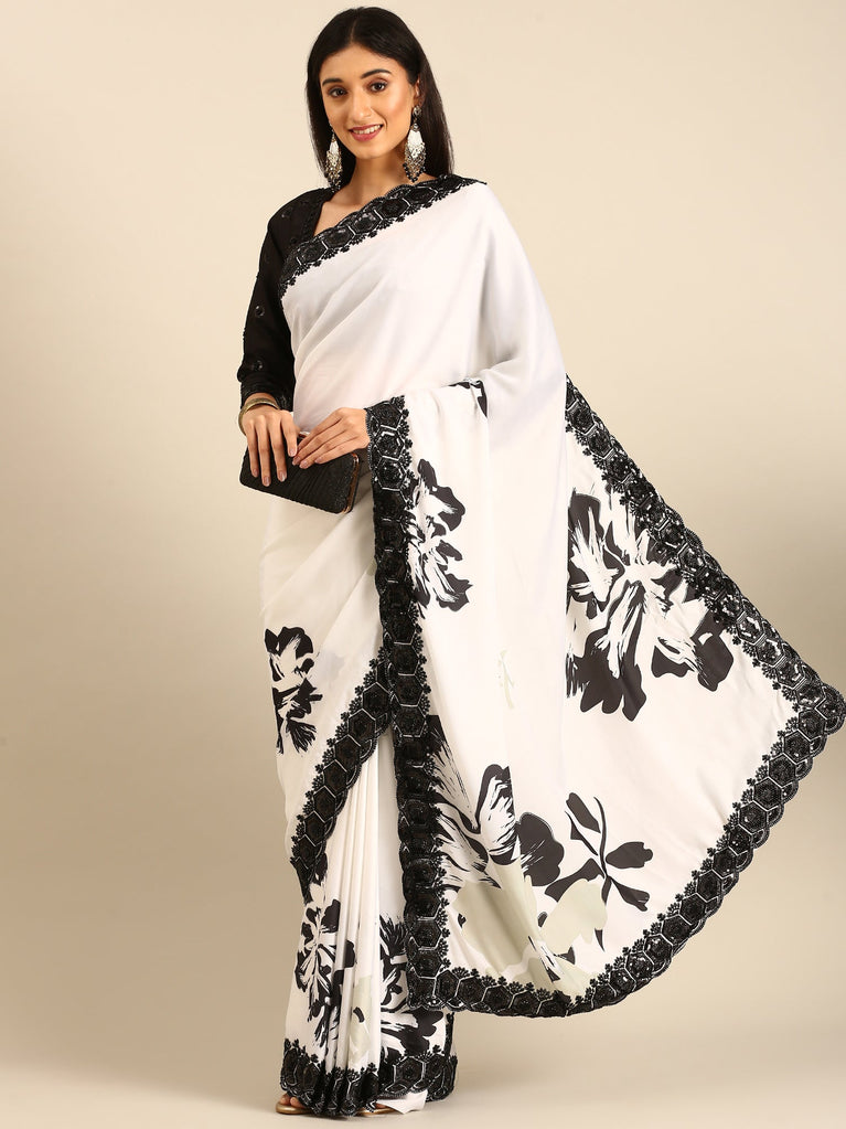 Black & white satin printed saree with hand embroidery & ready made blouse