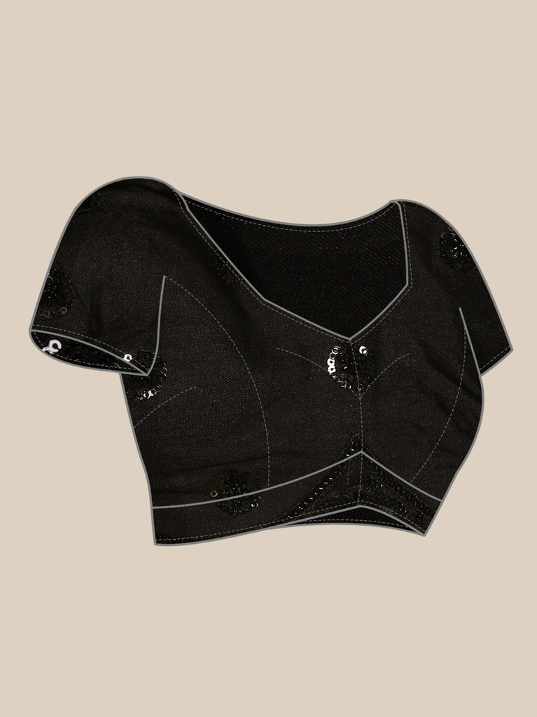 This black and white satin saree features elegant printed patterns enhanced with delicate hand embroidery, offering a timeless and refined look. Crafted for comfort and style, it comes with a ready-made blouse, making it easy to wear for any special occasion. Perfect for those who appreciate classic sophistication with a modern touch.The saree is accompanied by a stylish, ready-made blouse designed to complete your look.