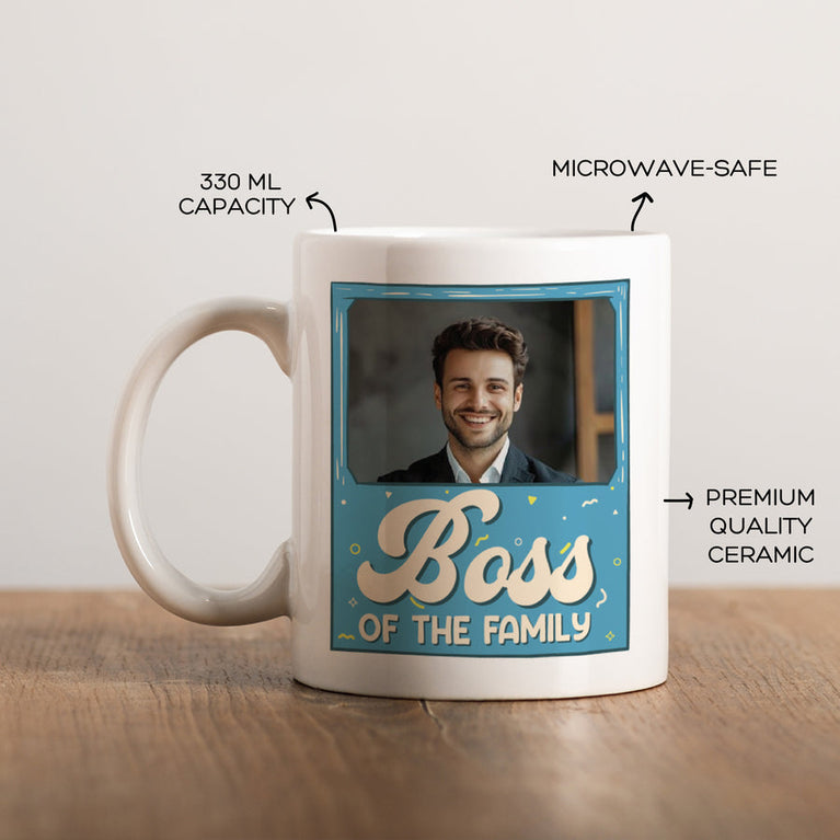 Every family has that one bossy-but-loved soul - and this mug is made just for them! And the best part? You can add their photo to the mug to make it even more special.Specifications :Capacity of the Mug - 330mlContent on the Mug - Boss of the Family.