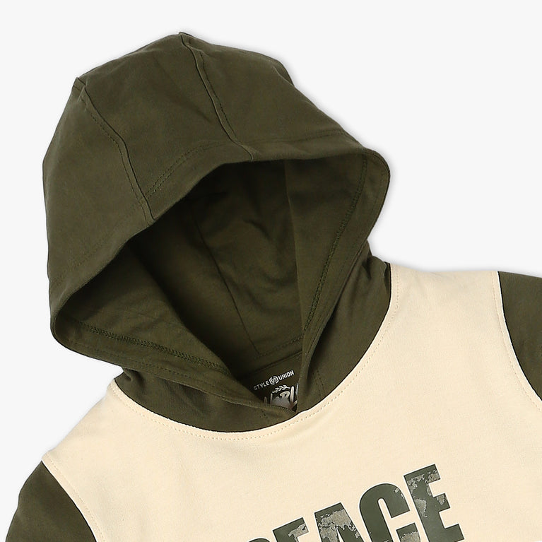 This street wear theme solid pattern sweat tees has a hoodie and full sleeve. Made from cotton, your kid's feel comfortable wearing a product.