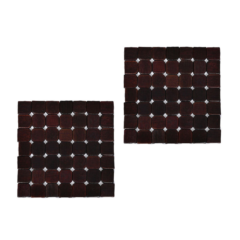 Checkered Bamboo Trivet Set of 2- Brown