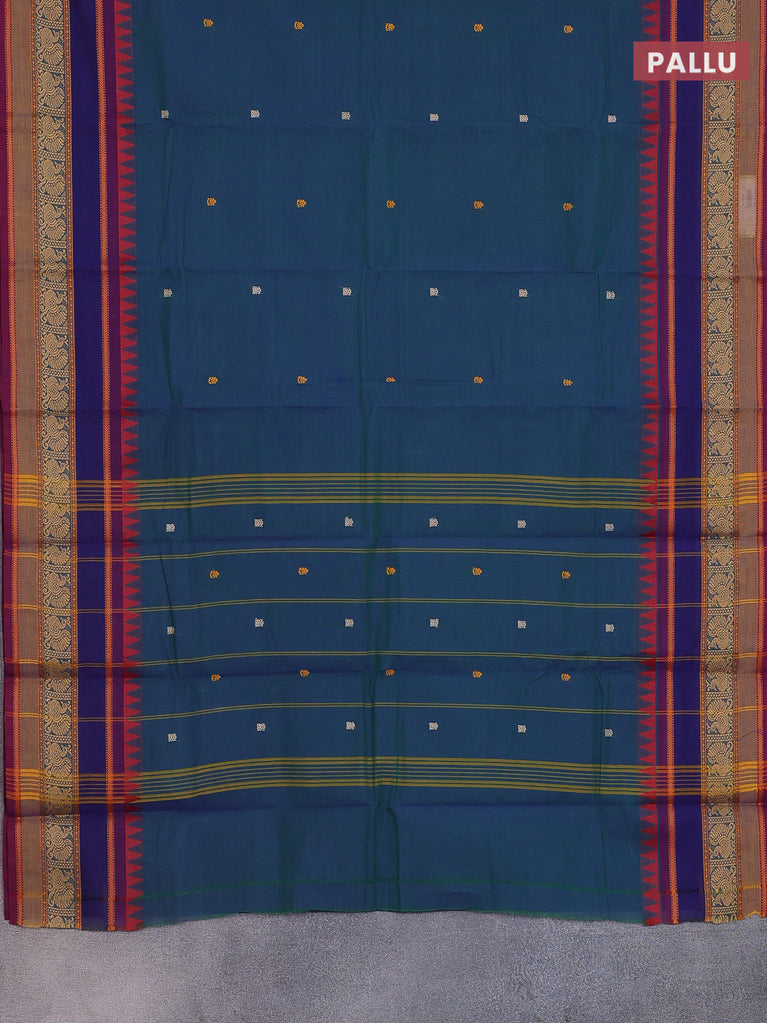 Chettinad cotton saree dual shade of bluish green and dual shade of maroon with thread woven buttas and long rettapet thread woven border