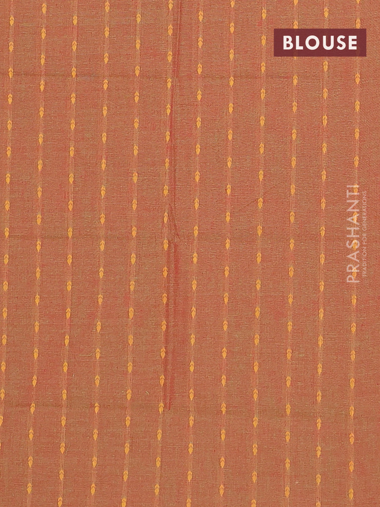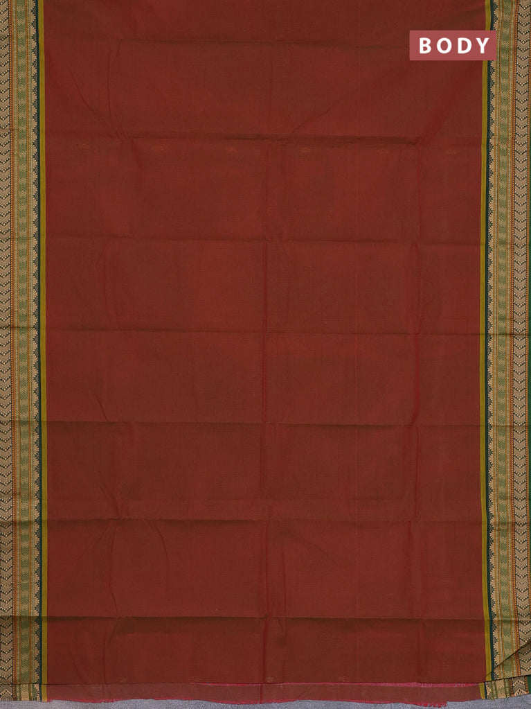 Chettinad cotton saree dual shade of greenish maroon and dark mustard with butta prints and zari woven border