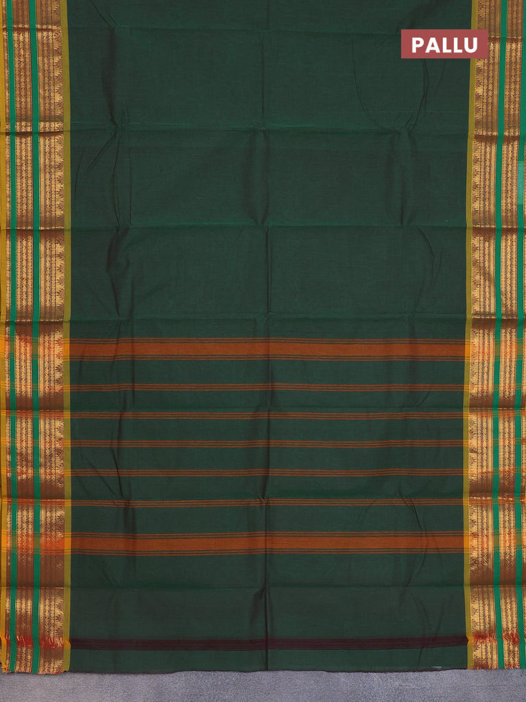Chettinad cotton saree green and brown with thread woven buttas and rattapet zari woven border