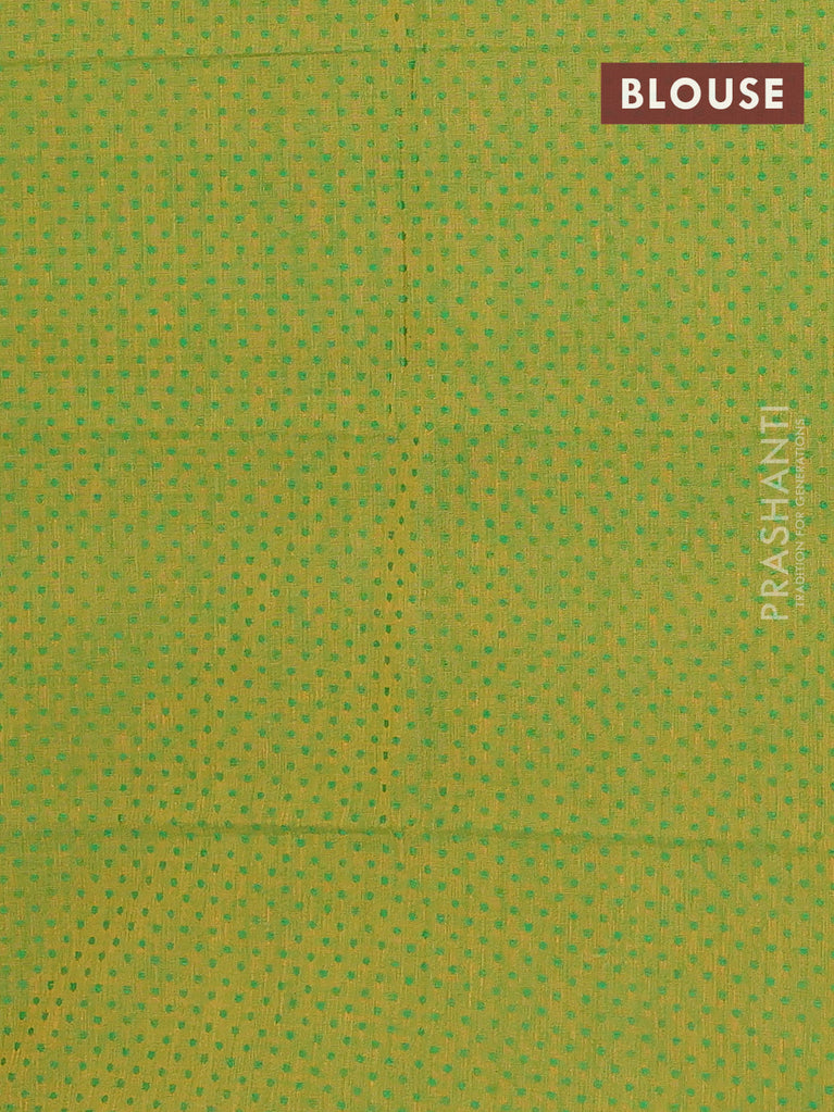 Chettinad cotton saree dual shade of yellow and green with thread woven buttas and thread & zari woven border