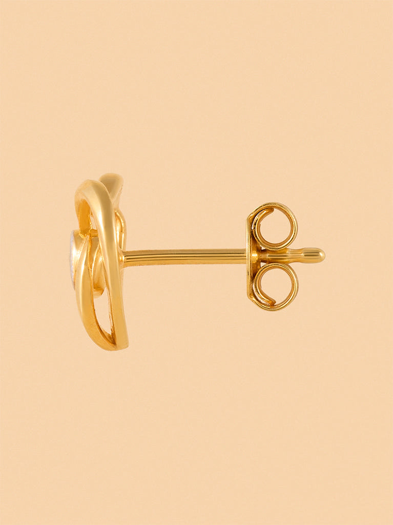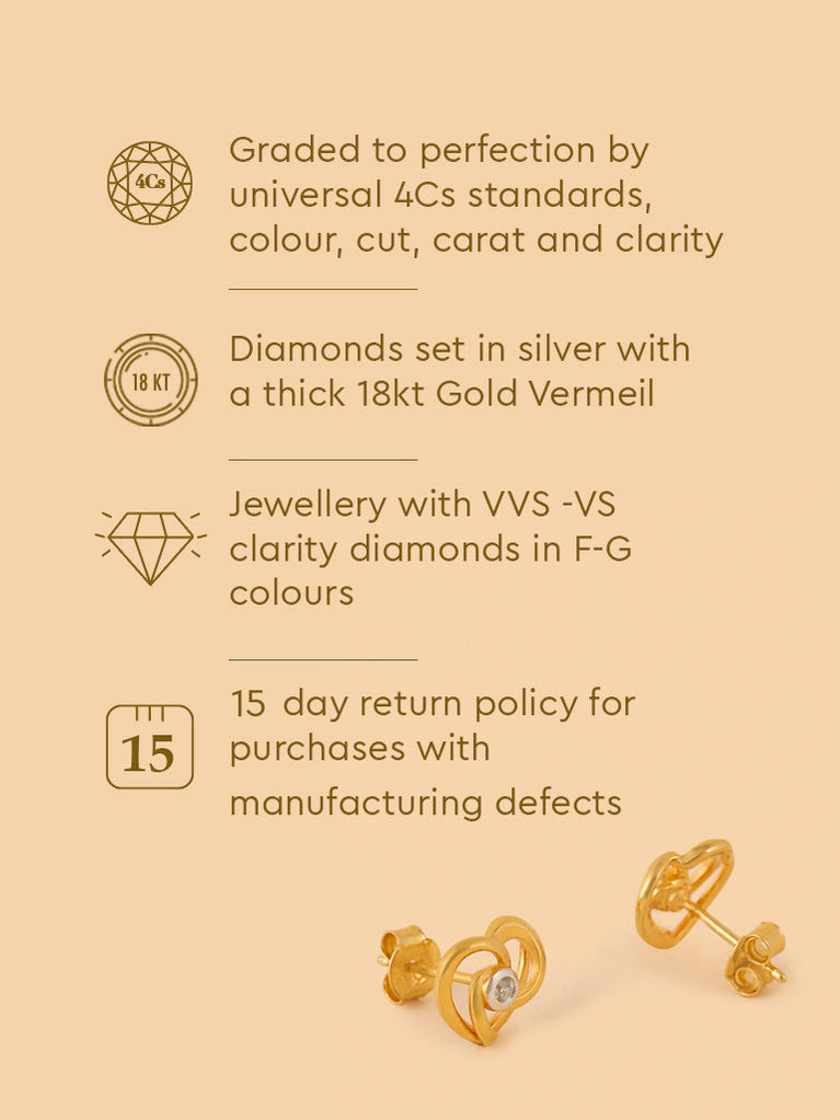 These chic studs showcase a graceful hollow ribbon heart crafted from gold vermeil by Westside X Pome. At the center, a sparkling lab-grown diamond adds an elegant touch, elevating the design to a timeless statement of sophistication. Perfect for adding a refined charm to any look.