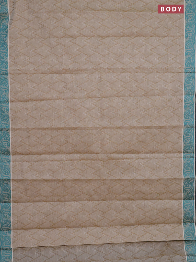 Coimbatore cotton saree cs blue and sandal with allover self emboss and thread woven border