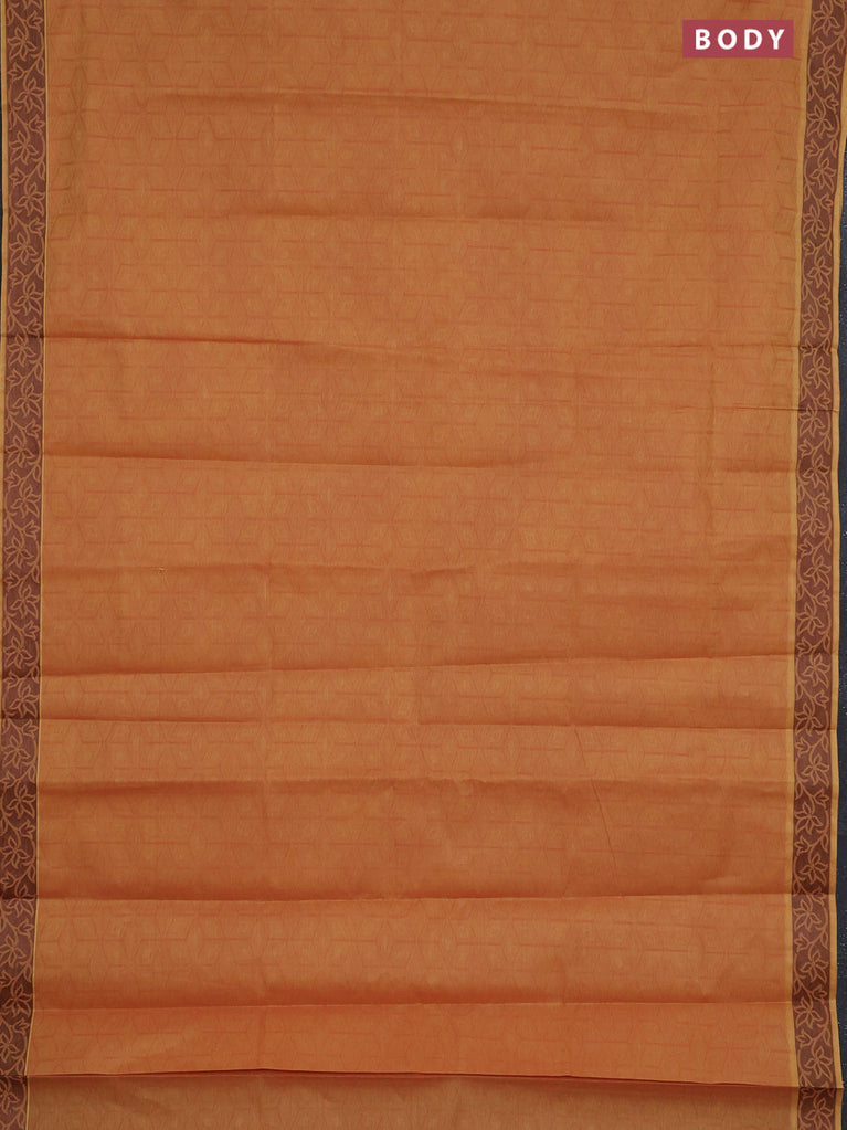 Coimbatore cotton saree dark mustard and blue with allover self emboss and thread woven border