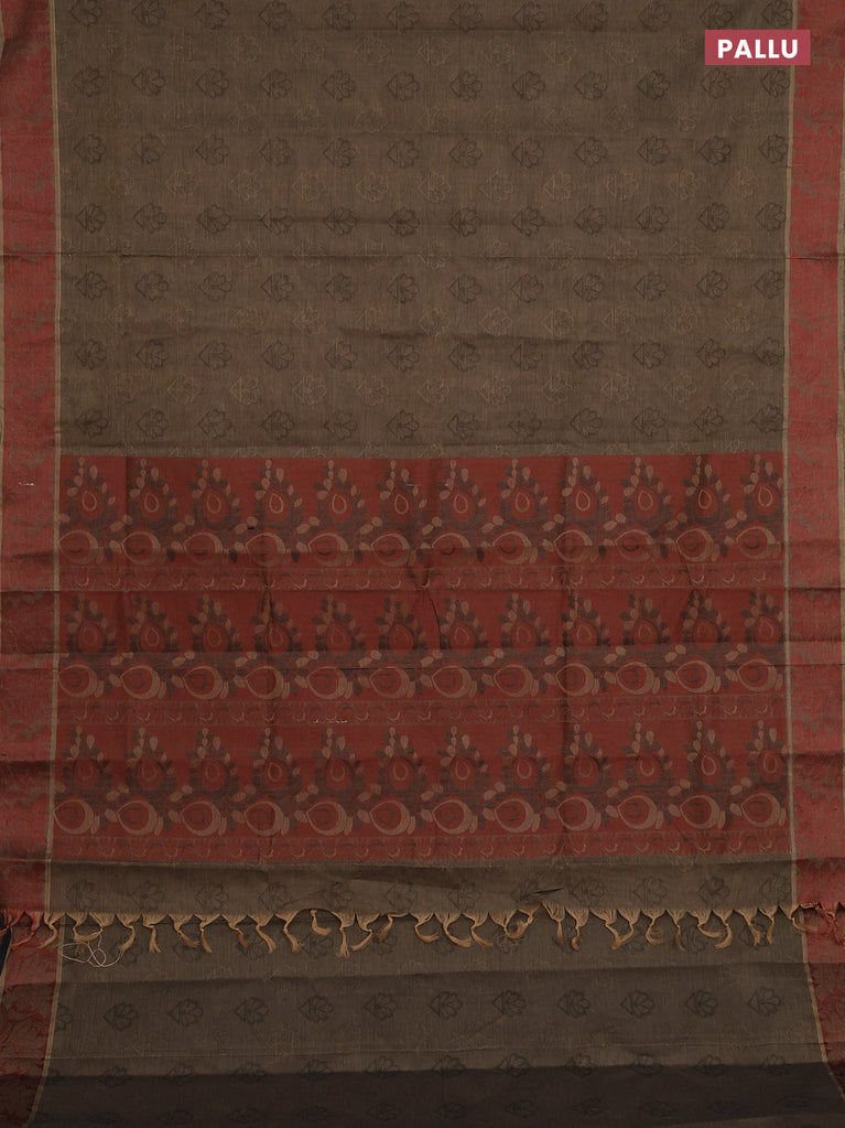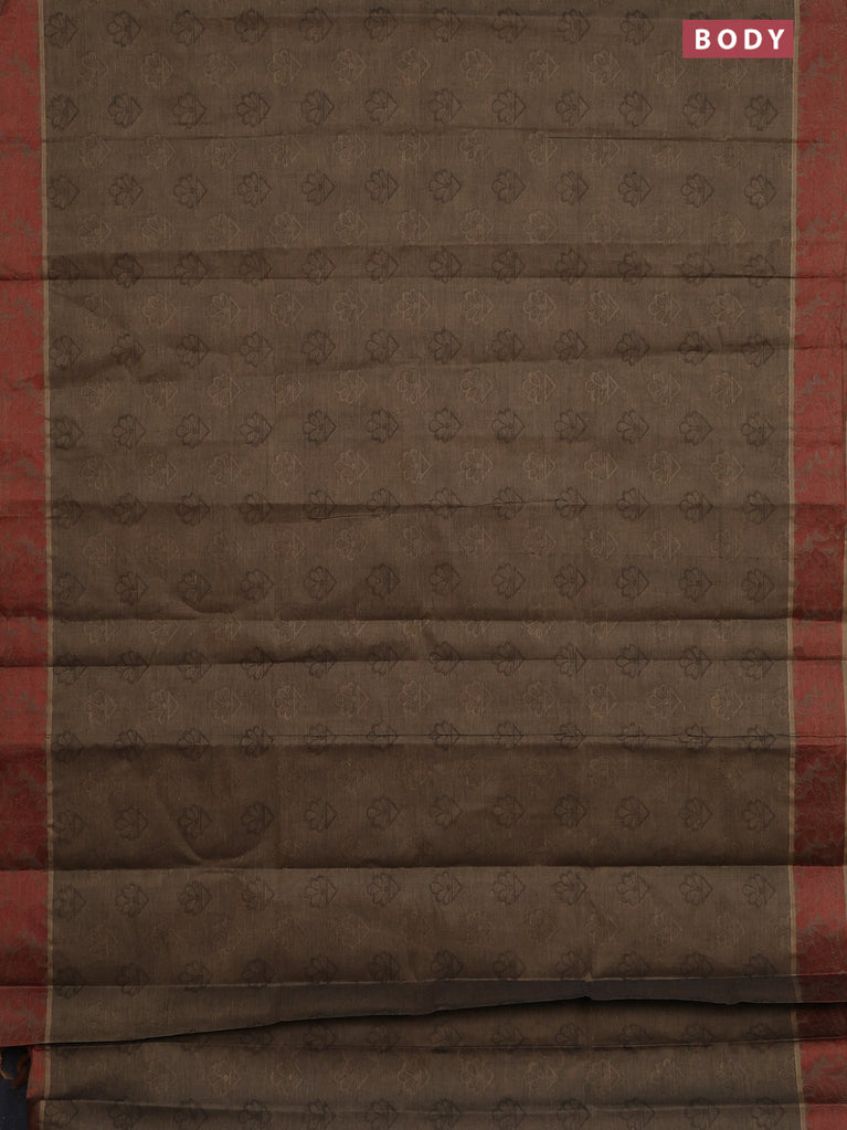 Coimbatore cotton saree dark sandal and brown with allover self emboss and thread woven border