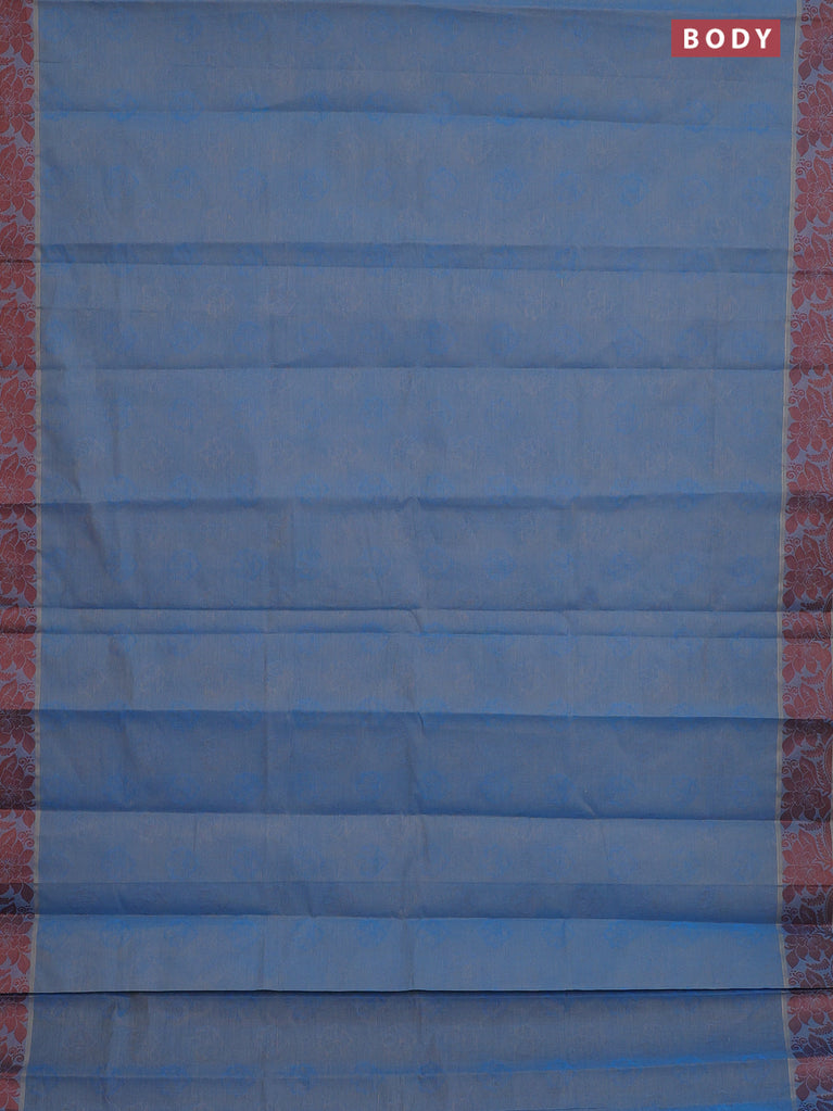Coimbatore cotton saree dual shade of blue and brown with allover self emboss and thread woven border