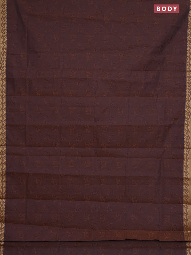 Coimbatore cotton saree brown shade with allover self emboss and thread woven border