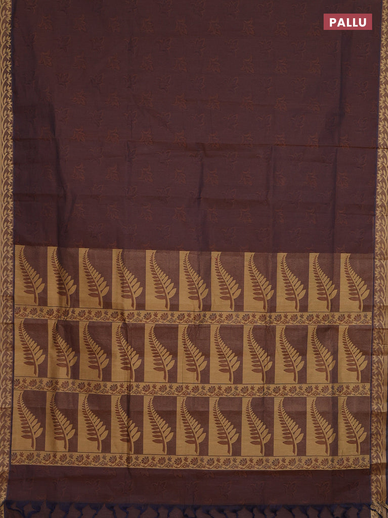 Coimbatore cotton saree dual shade of brown with allover self emboss and thread woven border