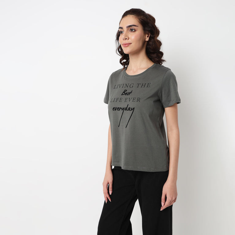 Cotton Crew Neck Relaxed Graphic T-Shirt