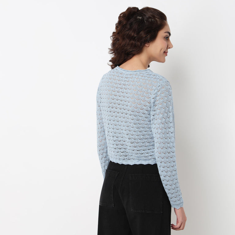 Cotton Full Sleeve Flatknit Top