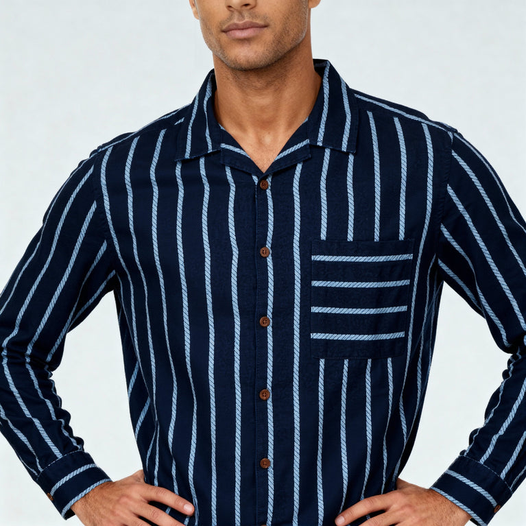 Elevate your wardrobe with the Cotton Striped Cuban Shirt, designed for the modern man who values style and comfort. This versatile piece seamlessly blends casual elegance with everyday wear, making it a must-have for any occasion.