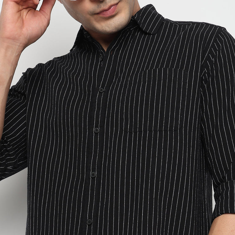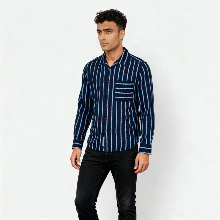 Introducing the Cotton Striped Cruiser Shirt, a stylish yet versatile choice for men. Crafted from high-quality woven cotton, this shirt combines comfort with a classic striped pattern, making it perfect for both casual and semi-formal occasions.