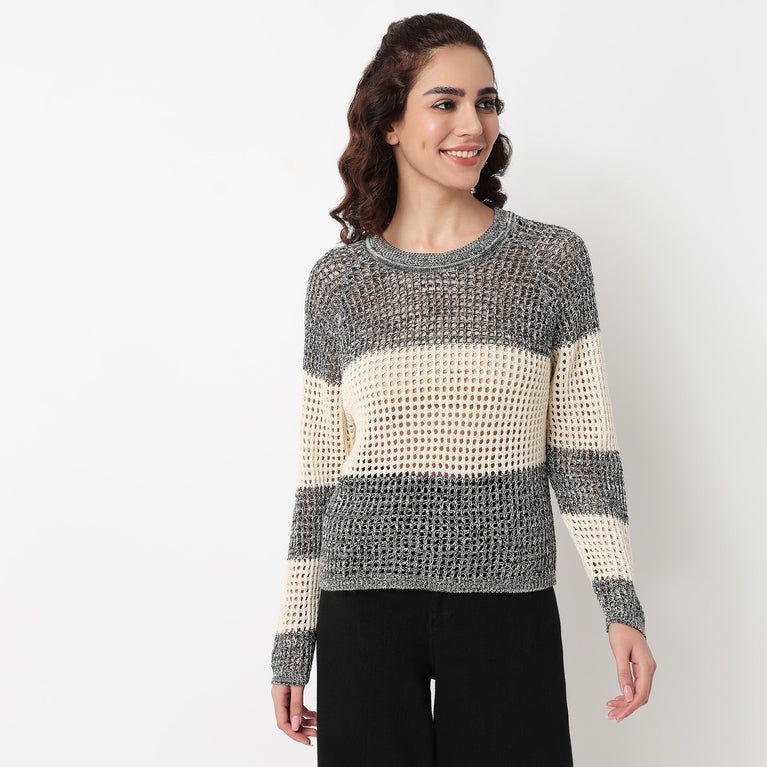 Cotton Striped Flat Knit Sweater