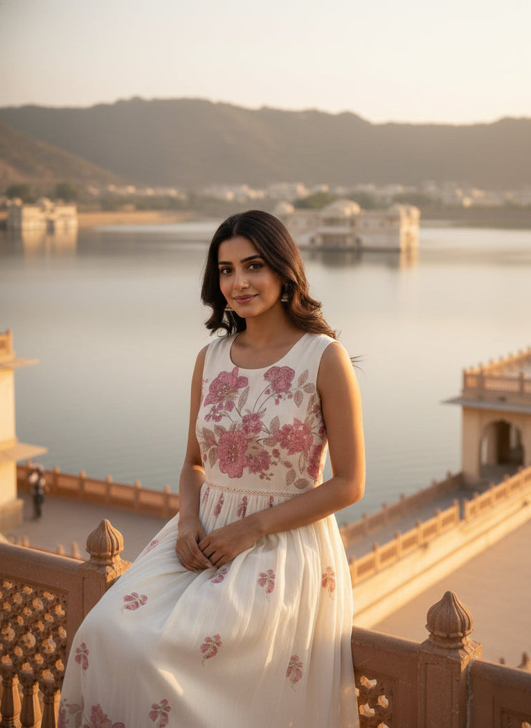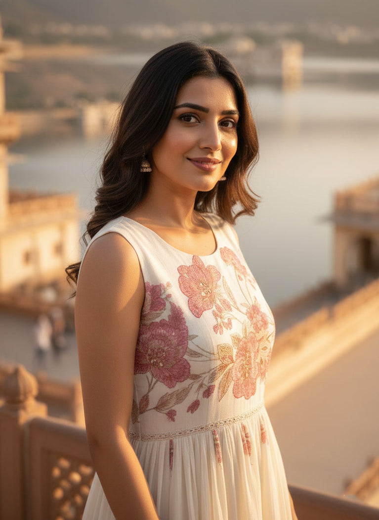 Embrace effortless elegance with this stunning cream chiffon long dress, adorned with delicate floral prints that bring nature's beauty to your wardrobe. The lightweight, flowing chiffon fabric drapes gracefully, offering comfort and movement for any occasion—from casual gatherings to special celebrations. The timeless cream base pairs perfectly with the intricate floral design, creating a versatile piece that complements various skin tones and personal styles. Whether you're dressing up for an event or seeking a refined everyday look, this dress combines sophistication with wearable comfort, making it a cherished addition to your collection.