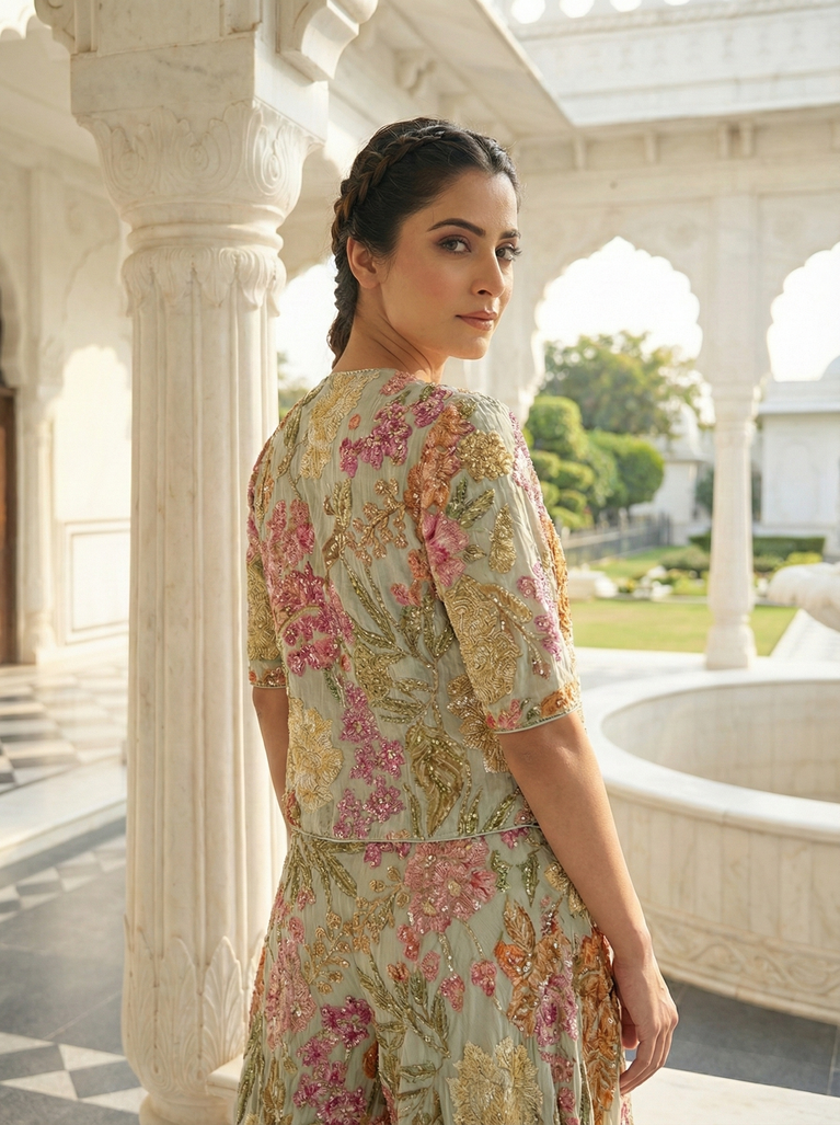 Along with the underlay, Su, the model, is wearing Dahlia Meadows as an overlay. You could find the same here https://suta.in/products/dahlia-meadows