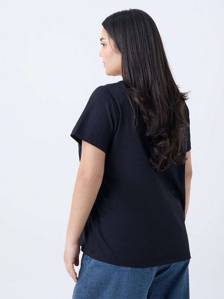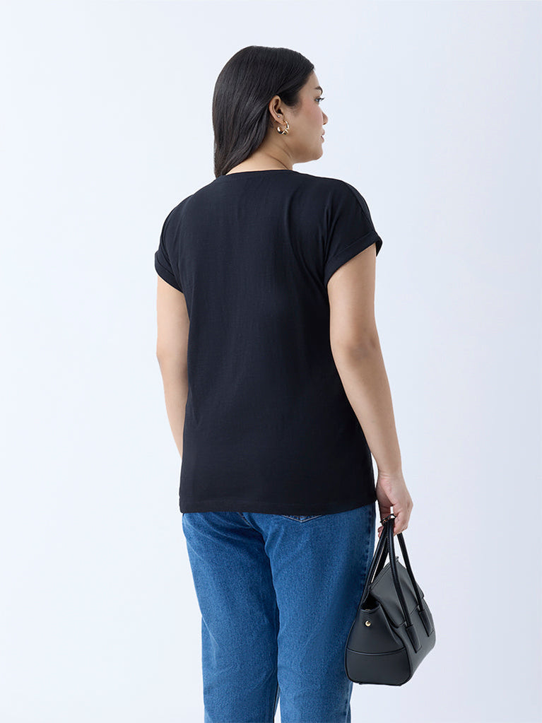 Gia Black Foliage Design Cotton T-Shirt