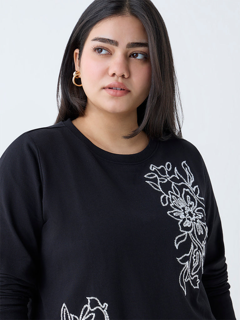 Gia Black Floral Embroidered Cotton Sweatshirt